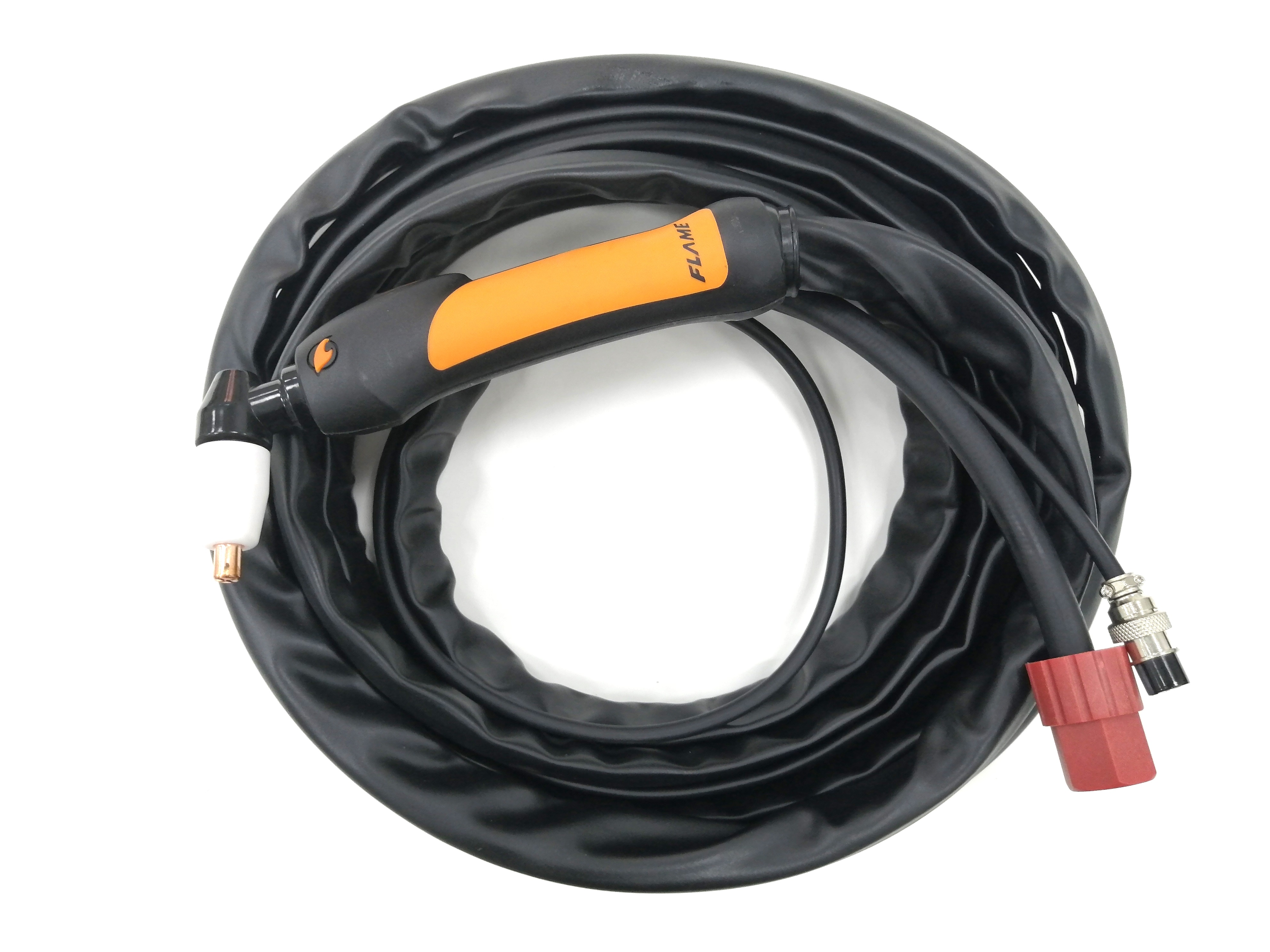 Плазменный резак (плазматрон) FP-31 предназначен для воздушно-плазменной резки различных металлов (углеродистых, нержавеющих, цветных сталей и сплавов). Подключается к аппарату плазменной резки через силовую гайку 3/8G, имеет разъем управления 2 PIN.